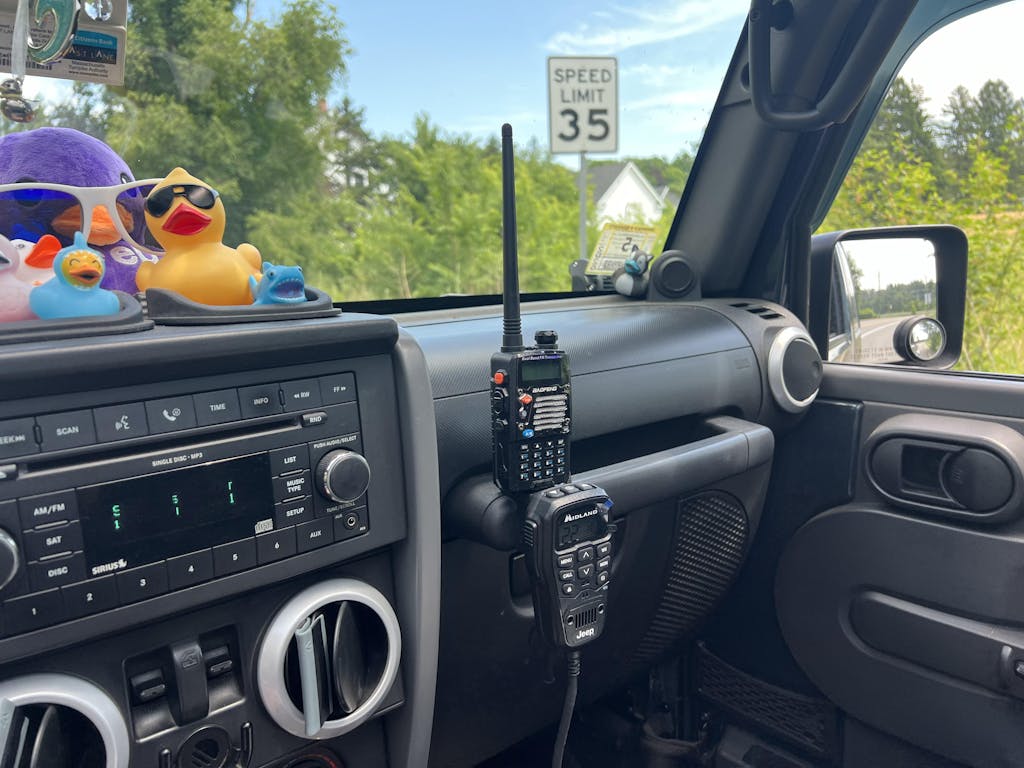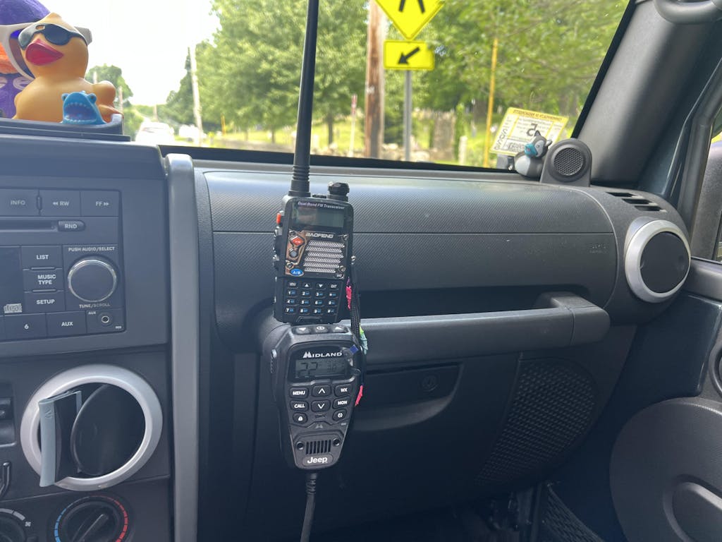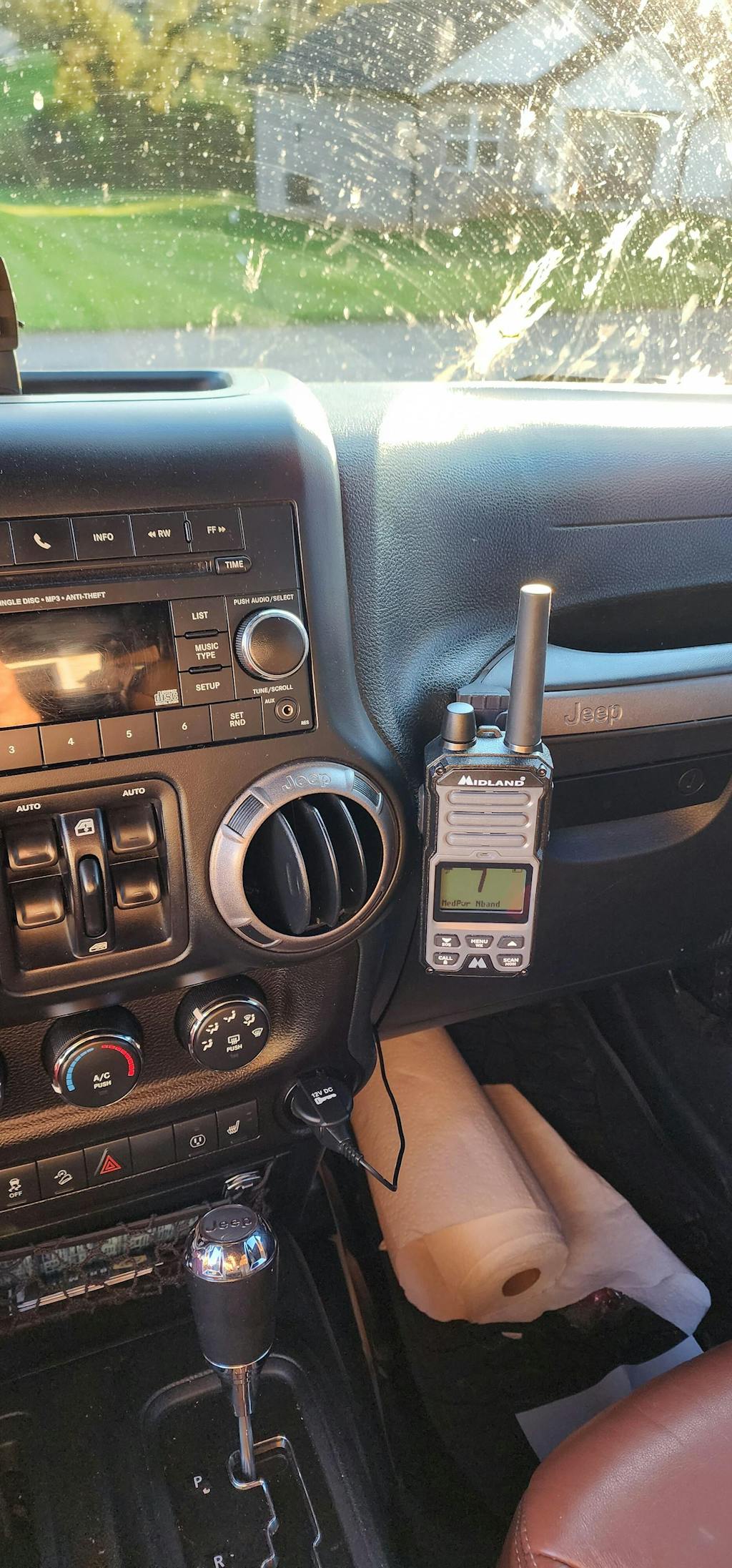 I bought a double mic holder and a single that attach by wrapping around the passenger grab handle. The design is such that it absolutely does not interfere with the use of the grab handle unlike those aluminum 20 and 25mm ball products do. These work well with all my mics (GMRS, HAM, CB) and blend in well with the design of the Jeep unlike those sold by competitors including both US and Chinese made knock offs. These are the real deal and made in America. You won't be disappointed!
